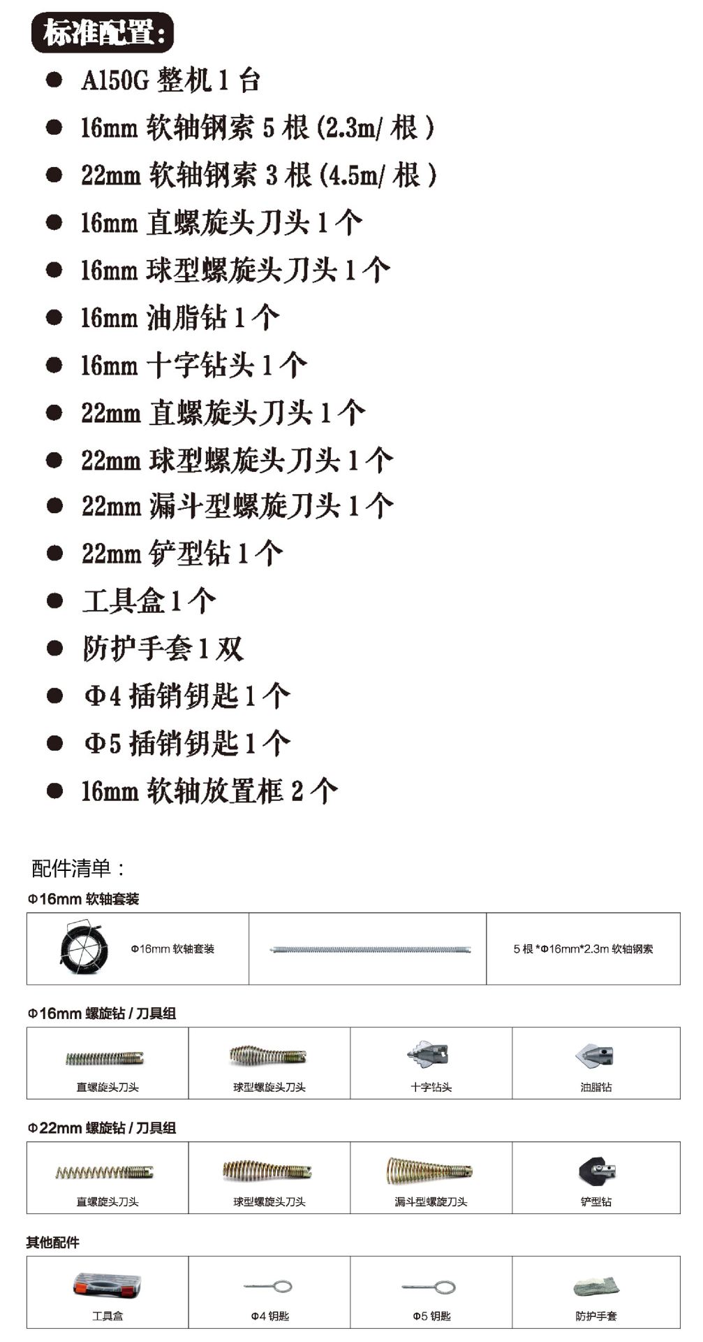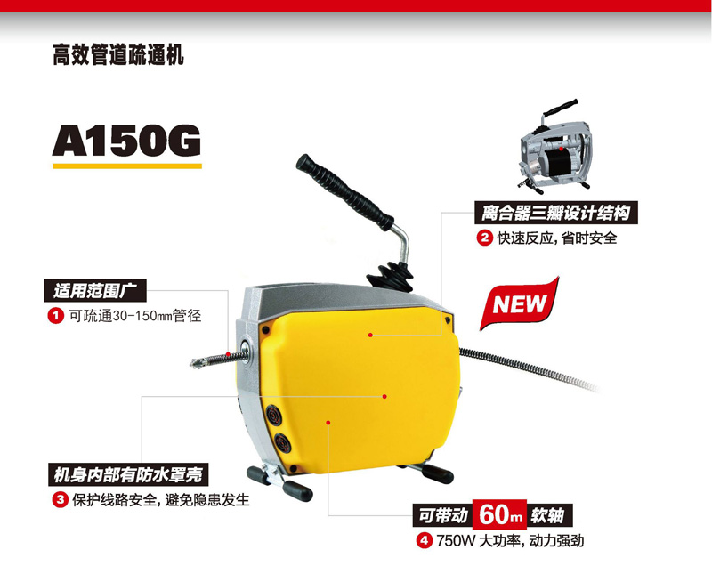 A150G疏通機采用壓鋁框架為主體,結(jié)構(gòu)精巧,移動方便,采用大功率的電機為動力,疏通能力強勁,是疏通清理醫(yī)院、市政管道設(shè)備等管道堵塞的首選設(shè)備。