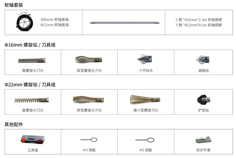 16mm軟軸的疏通范圍:φ32-φ100mm