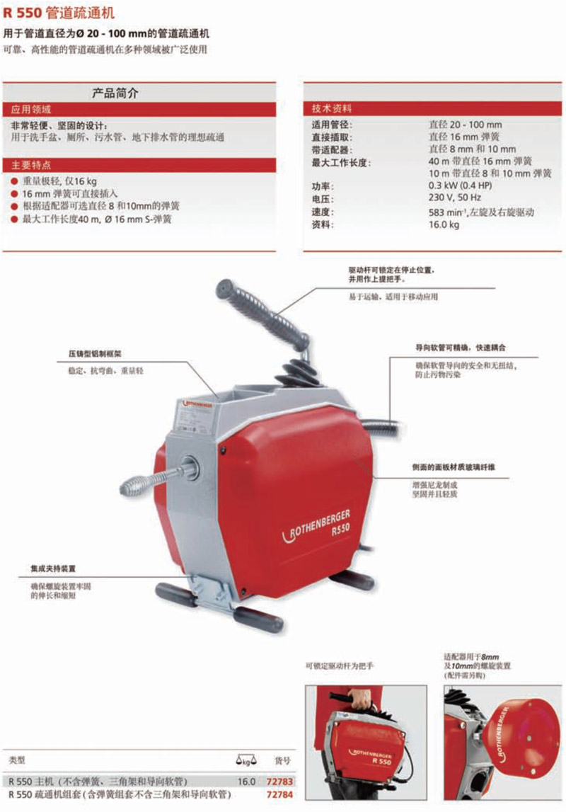 ●(用于管道直徑為20-100 mm的管道疏通機,可靠、高性能的管道疏通機在多種領域被廣泛使用 )