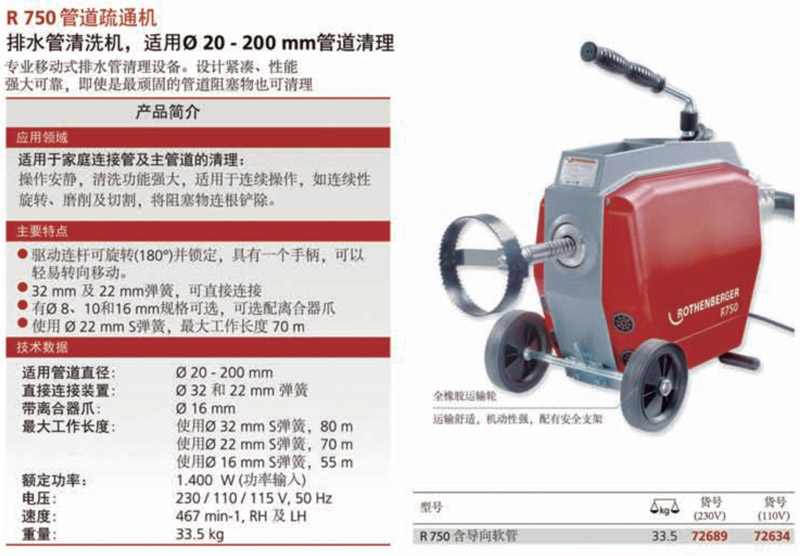 ●(排水管清洗機(jī),適用于直徑φ20-200mm管道清理,專業(yè)移動式排水管清理設(shè)備。設(shè)計(jì)緊湊、設(shè)計(jì)緊湊、性能強(qiáng)大可靠 即使是最頑固的管道阻塞物也可清理。)